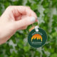 Rustic Pine Trees Summer Retro Sunset Family Reunion Forest Green Keychain. Great for family reunion vacations from camping in the mountains to a vacation at the family cabin in the woods by the lake. Personalise with your family name, location, year or date and more.