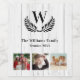 Personalise and add your monogram letter, family name, and family reunion year. Black letters. Add 3 of your own family photos. Rusic white wood as background.