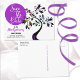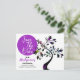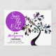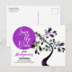 This family reunion white "Save The Date" typography is set in violet circle on the left side of the post card. The right side of the front design features an art nouveau tree with a variety of inset colours on the flowers. Fill in the personal information template fields for the front and back, remove text and/or click customise to select a typeface colour, size, and style your prefer.