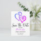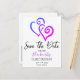 Send off the "Save The Date" announcement for a family reunion or other special occasion featuring linked blue and pink heart art on both sides. Personalise the front and back text in the template fields or click customise to select a font style, size, and colour you prefer.