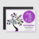 The right side of this "Save The Date" family reunion magnet card announcement design features a modern tree with multicolor insets on the flowers. The right side of the announcement holds the template information. The purple border and name colour match the tree inset colour. Personalise the template information, remove text and/or click customise to select a typeface colour, size, and style you prefer. You can order this magnet card with envelopes so it's ready for mailing or order without envelopes.