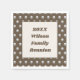 Personalise your family reunion dinner or picnic with these personalised napkins. The polka dot pattern features elegant silver circles against a dark brown background. A large rectangle in the centre features brown and beige colours and provides a solid background for your personalised reunion information. Quickly and easily customise the year and your family name.
