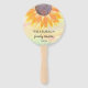 This family reunion hand fan is decorated with a yellow sunflower on a watercolor background.