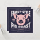 Gather up the family, it's barbecue time! Invite the whole family to enjoy an evening around the fire, great food and good company, and it doesn't matter what the occasion is. This invite has great stretched typography around a pink pig's face. Templates provided to customise it. Navy blue background. Perfect for family get togethers, small family reunions, engagement "toasting and roasting" parties, graduation after party, or a welcome home celebration.