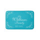 Family name aqua turquoise blue anti slip bath mat with elegant ornate flourish swirly swirls. Classy vintage bathroom decor for husband and wife couple / newly weds. Elegant monogrammed design men and women. Stylish script calligraphy typography with personalised surname. Cute personalised gift idea for wedding, engagement, baby shower, new baby, anniversary, birthday, housewarming party etc. Pretty chic interior decoration for bath room. Make your own with your last name and custom established year. Est. 20XX.