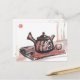A red teapot with large side handle awaits... Brush painting design by Ren Adams.