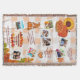 Celebrate gratitude and togetherness with this cosy Family Thanksgiving Memories blanket, perfect for showcasing all the moments that make your holiday special. The background features a warm, autumn-hued chequered picnic blanket, evoking the feel of a festive fall gathering. Scattered across the layout are delightful Thanksgiving icons like pumpkin pie, sunflowers, turkeys, and pumpkins. Space for approximately eight cherished family photos is grouped casually in clusters of 1s, 2s, and 3s, creating a relaxed and scrapbook-style aesthetic. Light-hearted, editable family quotes are nestled among the photos to bring a touch of humour and warmth. Near the bottom, a customisable text area framed by autumn leaves lets you add your family name or a personal message. This makes a perfect heirloom piece or heartfelt holiday gift!