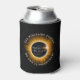 A total solar eclipse occurred on August 21, 2017, crossing the United States. This can cooler has a family name for you to personalise and the text "Totality 08.21.17"" "We Saw it together!" An orange and black graphic in the centre represents the eclipse.