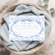 This item blends classic elegance with whimsical charm. The design features a delicate toile de Jouy pattern in soft baby blue, showcasing vintage-style safari animals like elephants, giraffes nestled among floral and leafy details. The intricate linework and gentle colour palette give it a timeless, heirloom feel—perfect for a refined and sweet celebration. Accented with elegant typography and frame with bow. This itemeffortlessly blends whimsy, tradition, and grace, offering a beautiful way to welcome a new baby. Matching items available.