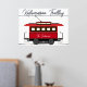 Family Tram Trolley Streetcar Foil Text Print Poster. Drawing by Claudine Boerner 2023, All Rights Reserved.