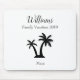 Remember your family's tropical vacation with this custom office mouse pad. Mouse pad is modern and has a black silhouette of a palm tree and black text with your family last name, travel year, and trip destination. This mouse pad is a lovely personalised keepsake that will be treasured for years to come.