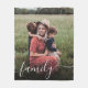 Create a custom fleece blanket to celebrate your family. "family" overlays your photo in a stylish white script with swashes.