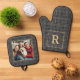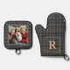 Family Winter Grey Plaid Custom Monogram & Photo Oven Mitt & Pot Holder Set