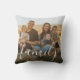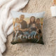 Personalise this minimalist family writing custom photo white elegant script throw pillow.