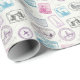 Retro style postal markings with famous landmarks on white background, seamless repeat pattern