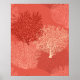 Print in an underwater pattern of overlapping fan coral in shades of pastel to deep coral orange on a medium coral orange background