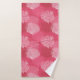 Towel set in an underwater pattern of overlapping fan coral in shades of pastel to deep coral pink and white on a medium coral pink background