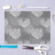 Tissue paper in an underwater pattern of overlapping fan coral in shades of light silver to deep graphite grey / grey with white on a medium grey background