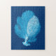 Fan Coral Sea Life Print, Indigo Blue and White Jigsaw Puzzle