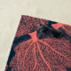 Vector pattern made of fan corals in living coral colour on dark blue background.