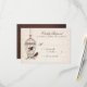 These wedding response cards feature a fanciful birdcage with swirls and a pink heart, and two cute birds, in chocolate brown, hanging against an ivory, textured paper background with faded handwriting. The wording, in alternating script and classic serif fonts, is completely customisable.