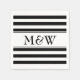 Classy black and white striped napkins for wedding. Striped napkins personalised with elegant typography for monogram. Create your own cute party napkins. Personalise with monogrammed name of bride and groom, quote etc. Customisable background colour. Great for chic weddings, bridal shower, engagement, anniversary, birthdays, dinner party, BBQ's etc. Fancy Black and white lines print can be made thinner or thicker. Stylish calligraphy typography. Chic stripes pattern with custom text or monogram. Can be printed vertical, diagonal or horizontal.