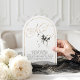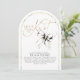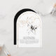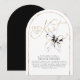 This “She’s Tying the Knot” bridal shower invitation captures romance with a playful twist. A flowing gold calligraphy headline glows like fine jewelry against a crisp white backdrop, instantly drawing the eye and setting a celebratory tone. Perched delicately above the lettering, a hand-painted black watercolor bow feels like the finishing ribbon on a beautifully wrapped gift — charming, unexpected, and undeniably chic. The arch-shaped cut adds an extra layer of distinction, giving the invitation a sculptural, modern silhouette that feels as special as the moment it announces.