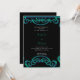 The invitation features a stunning black background with intricate green and blue scrollwork designs that adorn the top and bottom of the card. The combination of black, green, and blue creates a striking and memorable design that will surely captivate your guests.