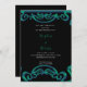 Fancy Black, Green & Blue Scroll Art Deco Wedding Invitation