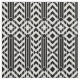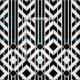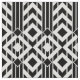 Stylish geometric fabric features a fancy black and white pattern with black and white chevrons separated by bold black stripes. The blocks of stripes end at a row of diamonds until the design repeats. Widely spaced white pinstripes divide the chevrons and diamonds into sections.