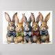 A fanciful ensemble of tied bow dapper bunnies, blending watercolor charm with playful sophistication.