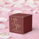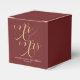 Package your wedding favors with these Fancy Burgundy and Gold Mr and Mrs Wedding Favor Boxes. This template can be customized to fit your wedding color palette with the background color and editable text area.