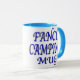 Funny mug for the camper. Fancy blue text reads, "FANCY CAMPING MUG"