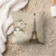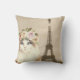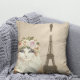 Vintage sepia tint background photo of the Eiffel Tower with overlay of beautiful fancy cat with floral crown