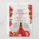 Quinceanera invitation for a western country charro theme with a fancy twist. Featuring elegant roses and gold accents, a beautiful gown, hat and text. Check the shop for this invitation with girls in different hair colours and skin tones and colour combinations to match your event as well as more accessories to bring your day together
