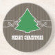 Sweet and whimsical Fancy Christmas Tree Swirls Coaster featuring a swirl border and dots highlighting a fun holiday tree on a faux wood panel background. This charming Christmas sandstone coaster is easy to customise with the text of your choosing and is perfect for adding a hint of holiday cheer to any decor while protecting your furniture! Click on the "Customise It" button to find additional personalisation options.