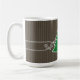 Sweet and whimsical Fancy Christmas Tree Swirls Mug featuring a swirl border and dots highlighting a fun holiday tree on a faux wood panel background. This charming Christmas mug may be customised with the text of your choosing and would be perfect for enjoying any hot beverage this holiday season. Click on the "Customise It" button to find additional personalisation options.