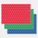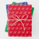 Create your own monogrammed bright Christmassy red, green and blue wrapping paper for three friends.