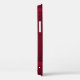 A phone case with a red background decorated with elegant swirls and ornamental designs along the borders.