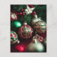 Fancy Elegant Victorian Red Green Christmas Balls Holiday Postcard