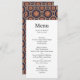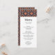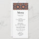 Menu card with a repeating pattern of decorative ornate elements in flower, star and sun shapes.