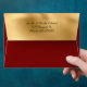 Elegant all-purpose envelope done in rich red, with graphics of a gold ornamental swirl, on the front and a solid gold back flap. Inside the envelope there is graphics of a solid gold lining. Personalise the return address to suit your needs. Great for special occasion invites, thank you cards and announcements.