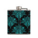 Fancy Girly Floral Damask Stylish Black and Teal Hip Flask