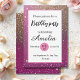 This stunning invitation features a vibrant hot pink glitter background adorned with glamourous gold glitter accents, adding a touch of elegance and sparkle. With its feminine and fancy design, it's perfect for birthdays and other celebratory events. Personalise the invitation with your own party details to make it truly unique. Get ready to impress your guests with this eye-catching and glamourous invitation that sets the tone for a memorable and dazzling birthday celebration.