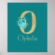 Fancy Gold & Aqua Floral Letter O Wall Print