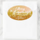 Fancy Gold Peaceful Snow Forest Merry Christmas Oval Sticker