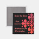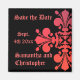 Gorgeous magnet in black with a coral and pink coloured damask fleur de lys on it and place for your names and date. This may print out darker than shown. I just wanted you to be aware of it.
