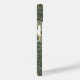iPhone case features beautiful AI generated digital art design of a Steampunk butterfly in greens on a vintage ornate vines background.