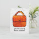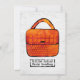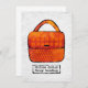 A funny expensive handbag in orange and red with yellow and orange pattern of circles and squares sitting on a textured white background with the words "Zillion dollar fancy handbag".