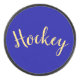 Fancy "Hockey" Script Rich Royal Blue Background Hockey Puck